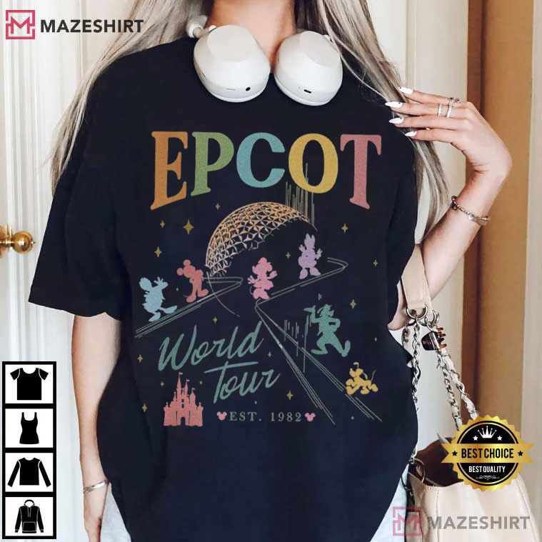 The Epcot World Tour Disney Drink Around The World Vintage T-Shirt perfectly captures the spirit of adventure, culture, and enjoyment that makes EPCOT one of the most popular Disney parks. This design seems like a postcard from your favorite Disney journey because of its gentle, antique colors and classic layout.