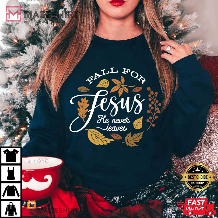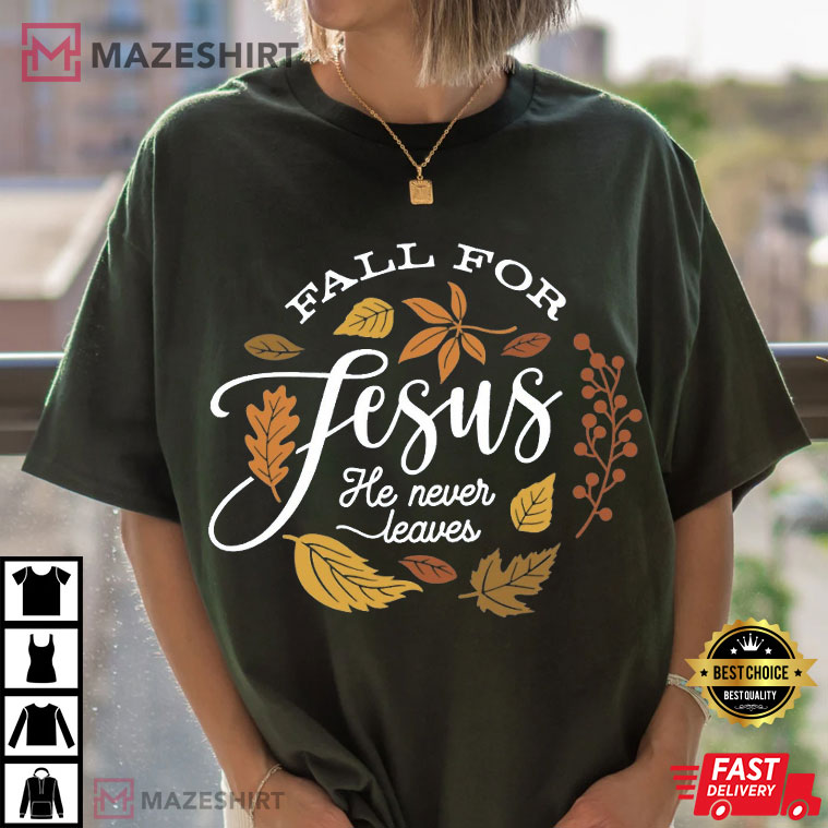 Fall For Jesus He Never Leaves Autumn Thanksgiving T-Shirt