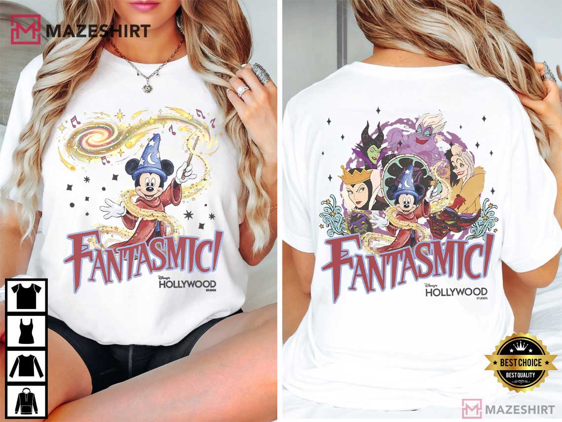 Step into a world of imagination with the Fantasmic Sorcerer Mickey Wizard Hollywood Studios Disney Characters T-Shirt—a design that instantly transports you to one of the most beloved shows at Disney parks. This shirt embodies the magic, drama, and nostalgia of Fantasmic! Whether you’ve seen it under the stars or want to see it someday, this shirt is for you. in a way that makes you feel alive.