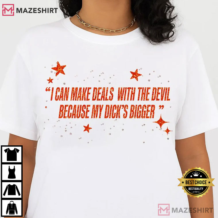 There are graphic shirts and then there are declarations. The Father Figure I Can Make Deals with the Devil The Showgirl Era Music T-Shirt doesn’t whisper; it yells with sheer, glittery confidence. It’s a wearable piece of art that screams, “I know who I am, and maybe the Devil and I have a standing appointment.” It has dark comedy, pop culture flare, and a rockstar look.
