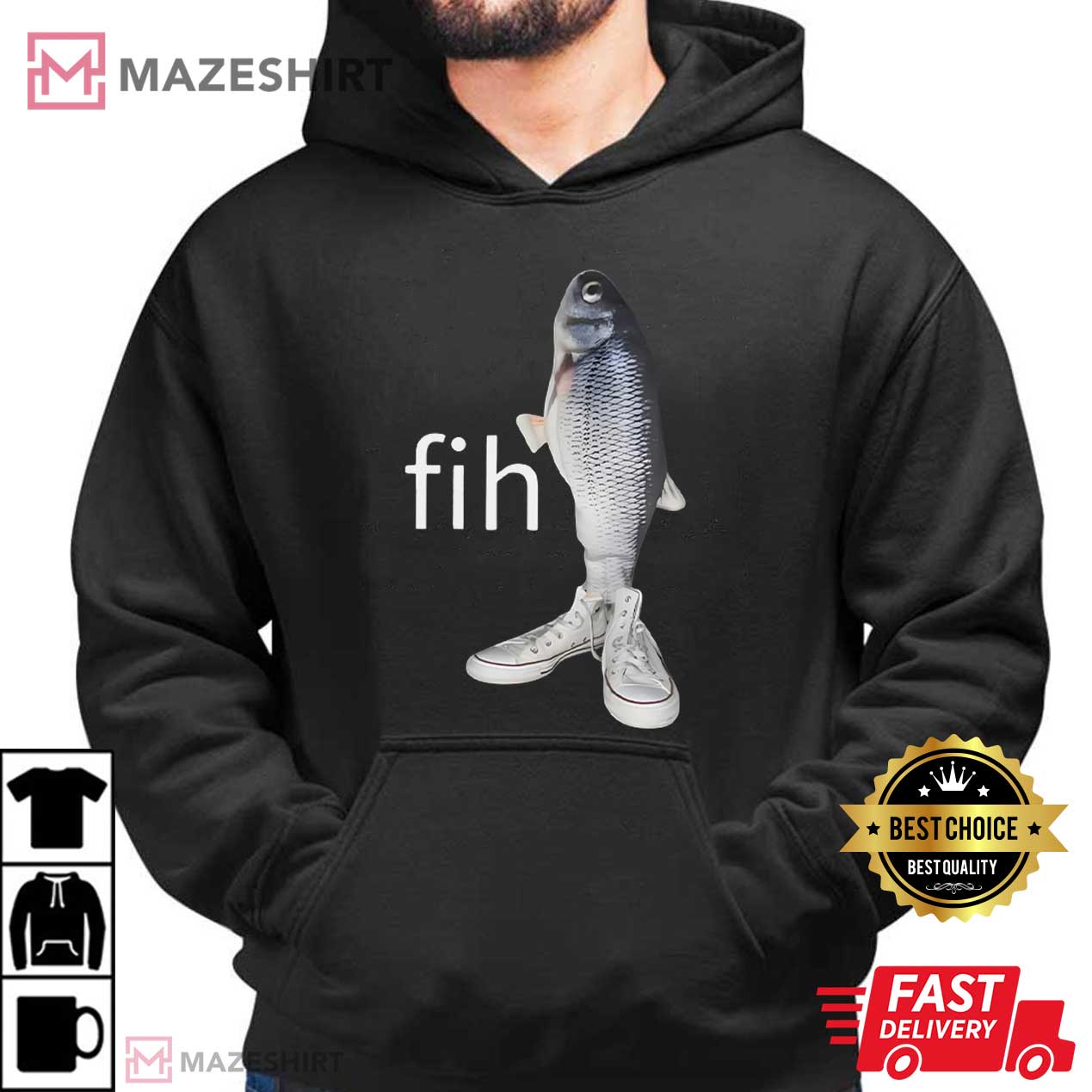 The Fih Fish Brain Rot Meme T-Shirt is the funniest thing on the internet right now. This design has a realistic fish standing up in a pair of classic sneakers with the word “fih” next to it, which is a little misspelled. It represents everything funny and crazy about modern meme culture.