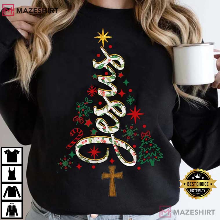 Floral Jesus Christian Christmas Tree T-Shirt – christmas themed shirts, funny christmas shirts