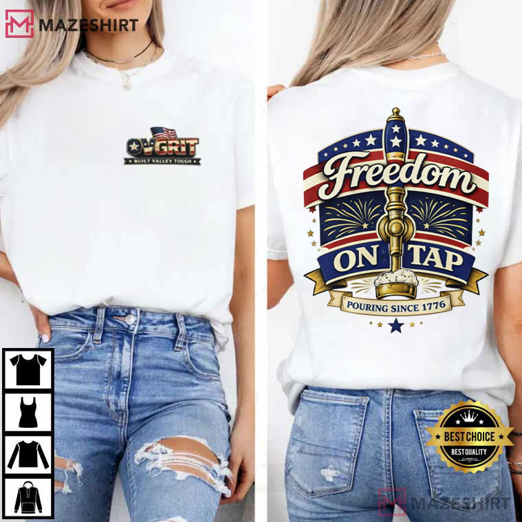 Freedom On Tap Beer Patriotic BBQ Party T-Shirt – graphic tees men, graphic tees women, unique graphic t shirts