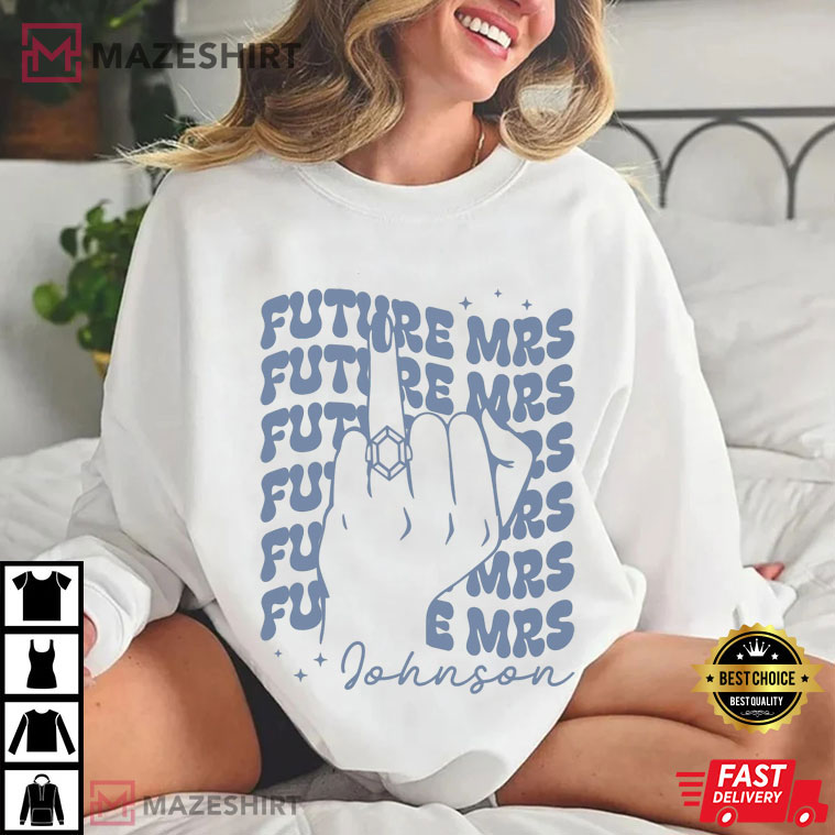 The Future Mrs. Bachelorette Party Bridal Shower Gift Engaged T-Shirt is perfect for celebrating love, laughter, and a little bit of pre-wedding madness. This Engaged T-Shirt is the best thing for a bachelorette party because it has a stylish “Future Mrs.” design and a fun atmosphere that works for bridal showers, hen parties, or just showing off that shining ring. This Bridal Shower Gift is a must-have Wedding Prep Clothing for the engaged queen. It has a last name like “Johnson” on it and a bold hand-with-ring image. It’s your go-to for pre-wedding events because it’s comfortable and full of personality.