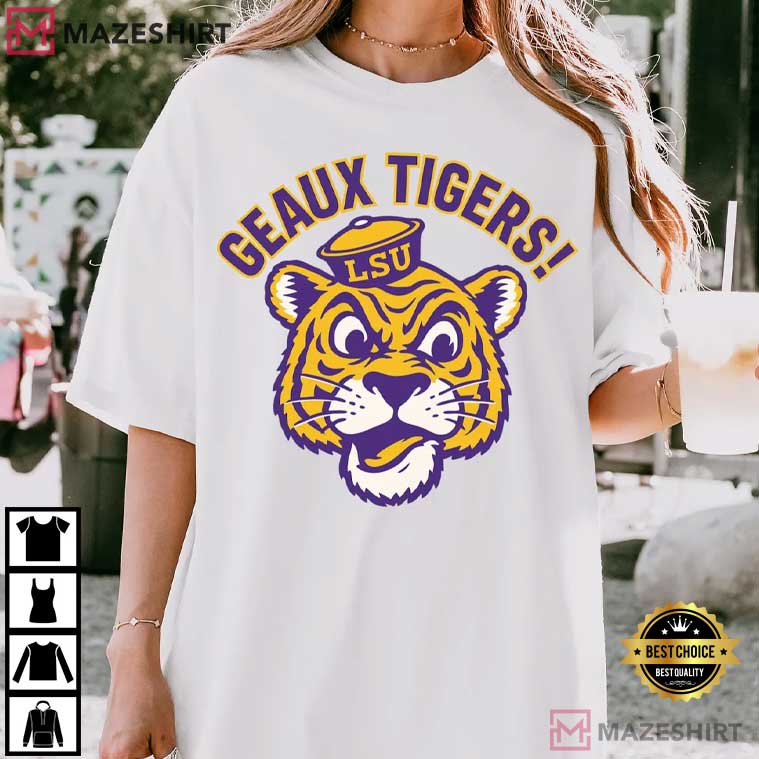 Hey, LSU fans! The Geaux Tigers Purple Gold Louisiana Tigers Game Day T-Shirt is perfect for you if you want to show off your Louisiana pride and cheer on the Tigers. This isn’t just any T-shirt; it’s a ticket to game day glory, a badge of honor for every tailgate, and a cozy friend for those late-night victory parties.