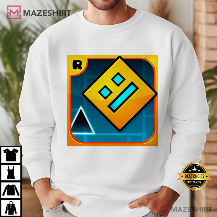 This isn’t just a t-shirt; it’s a high-score ode to the addicting world of Geometry Dash. It’s great for gamers, gift-givers, or anyone who likes a good challenge with a side of chuckles. This gamer t-shirt has the game’s famous yellow and orange diamond emblem on a smooth white background. It’s a must-have for anyone who loves the rhythm-based platformer.