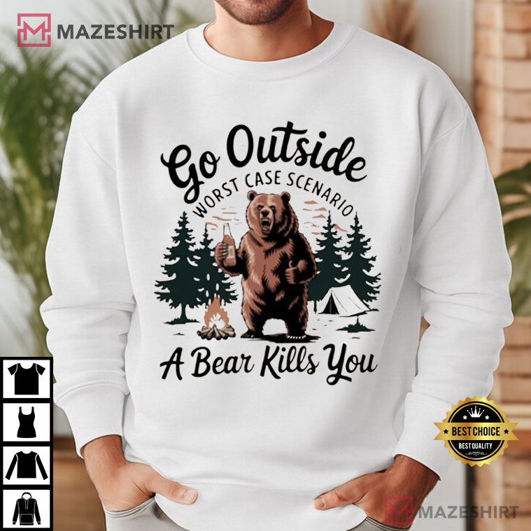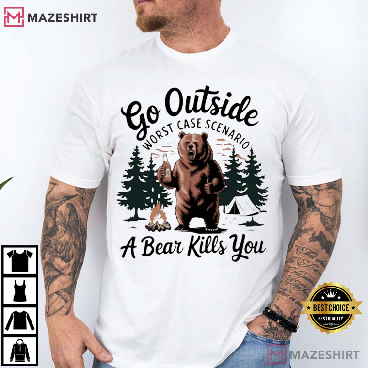 Go Outside Worst Case Scenario A Bear Kills You Camping T-Shirt