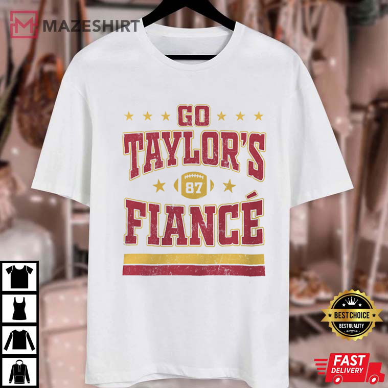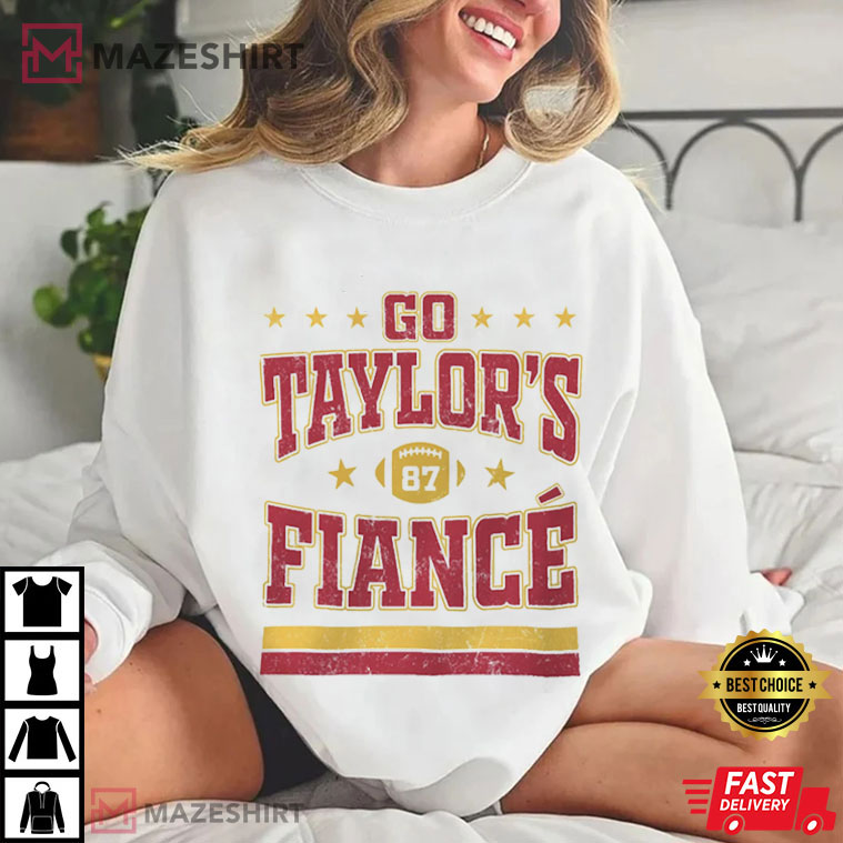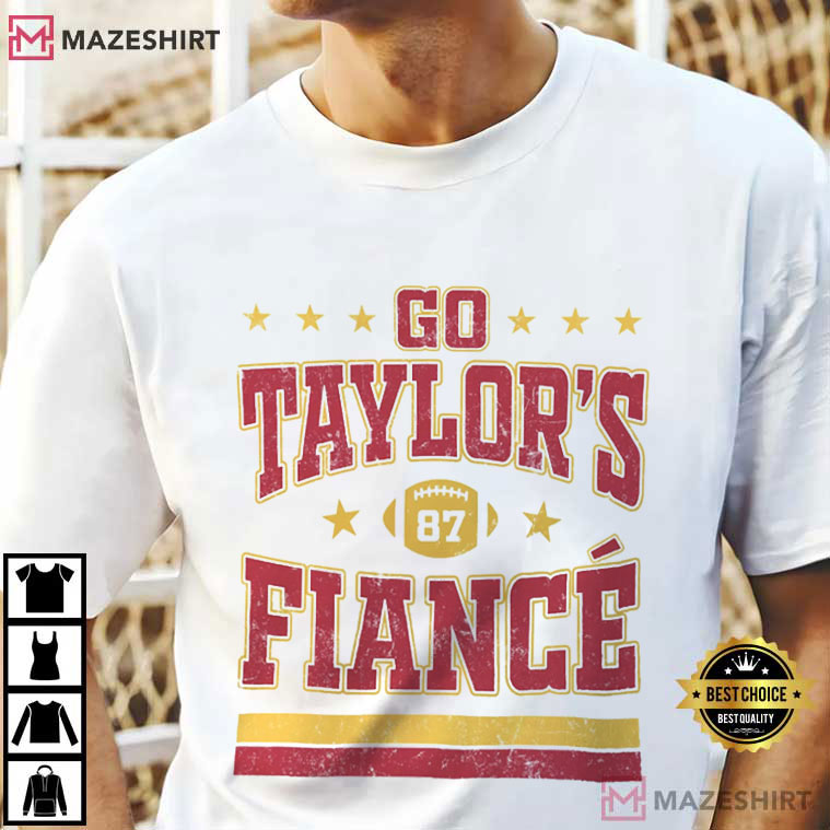The shirt has enormous varsity-style letters that say “Go Taylor’s Fiancé” next to a picture of a football and Kelce’s famous number 87. It’s a funny reference to the romance that’s been in the headlines in both sports and entertainment. For Swifties, this is a great way to express their support for Taylor’s MVP off the field. It’s a hilarious look at the rumors regarding Kelce’s engagement and his relationship with one of the world’s most famous singers for NFL fans. It’s a design that screams “pop culture history in the making” all over.