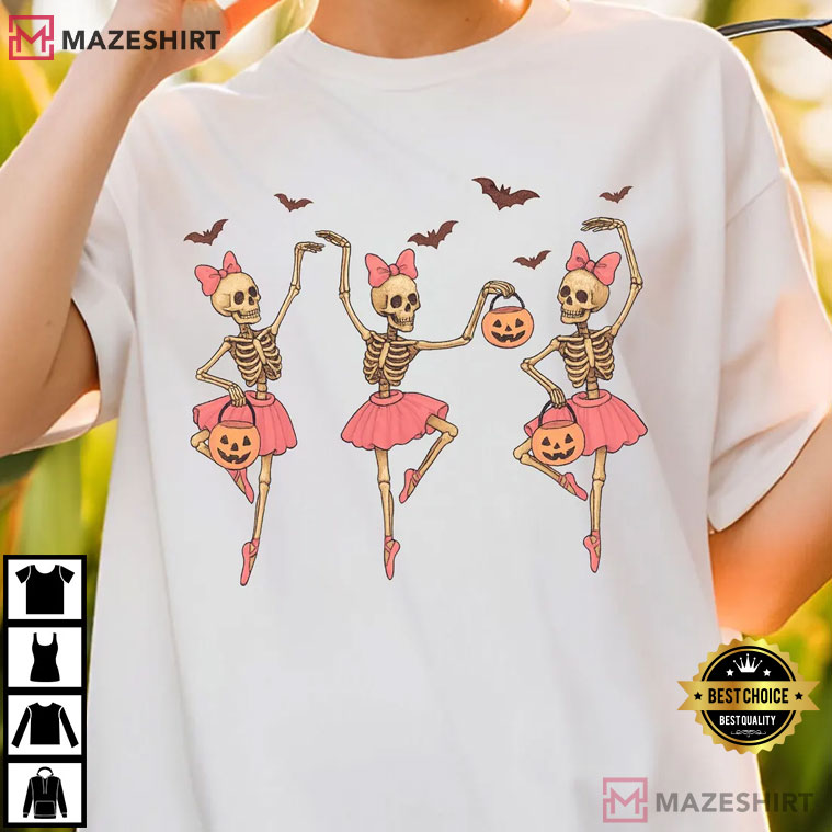 Halloween Skeleton Ballerina Dancing Funny T-Shirt – halloween themed shirts