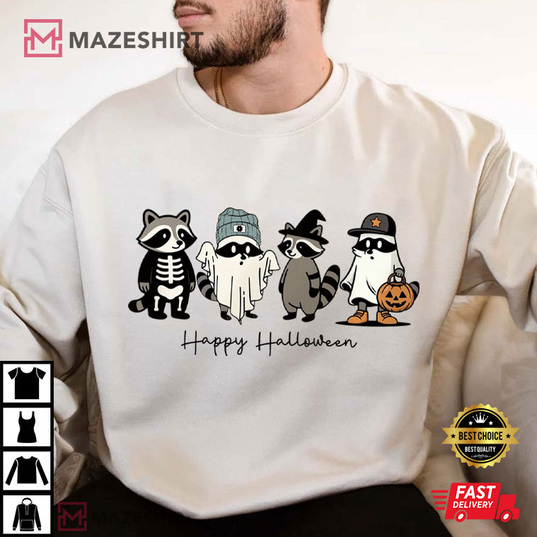 What is the first thing that comes to mind when you think of Halloween? You could think of pumpkins, candy, costumes, and maybe even a few scary skeletons. But here’s the thing: you probably never thought about raccoons dressed up as ghosts, witches, or skeletons before now. And that’s why this Happy Halloween Cute Raccoon Ghost T-Shirt is going to be your favorite seasonal shirt.