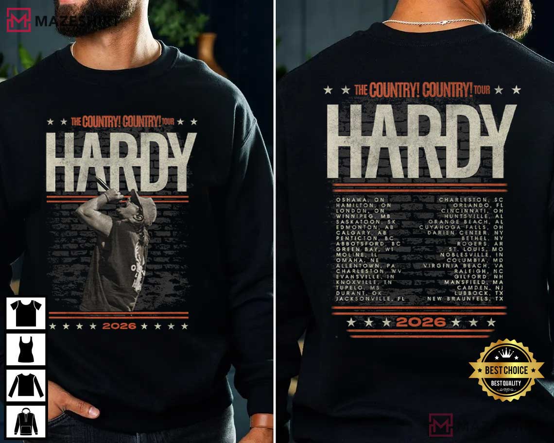 The Hardy Tour 2026 Country Music Concert T-Shirt is more than just a shirt; it’s a part of the tour. It has everything fans appreciate about authentic concert merchandise, from the rough front image to the complete tour list on the back.