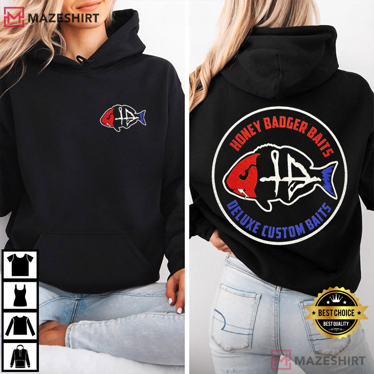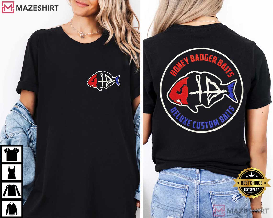Fishing isn’t just a hobby; it’s a way of life that requires patience, ability, and the joy of the catch. The Honey Badger Baits Slayer T-Shirt honors that ethos with a strong, eye-catching design that draws on the look of custom bait brands and the tough attitude of professional fisherman. This shirt contains a beautiful fish skeleton pattern together with fishing hooks and tackle parts. It reflects the fearless energy of anglers who are always ready to catch the next big fish.