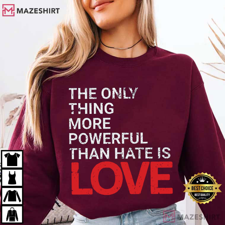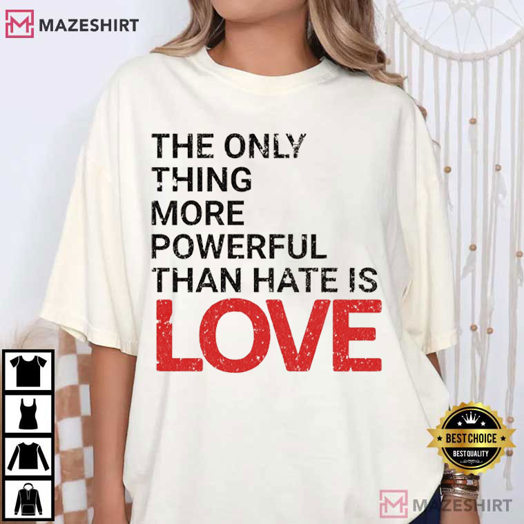 There are times in history when one single sentence means more than a thousand speeches. One of those statements is the basis for our “The Only Thing More Powerful Than Hate Is Love” T-Shirt.