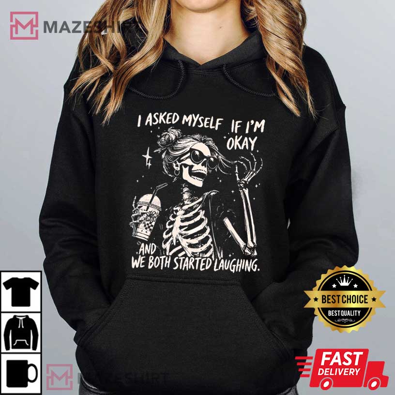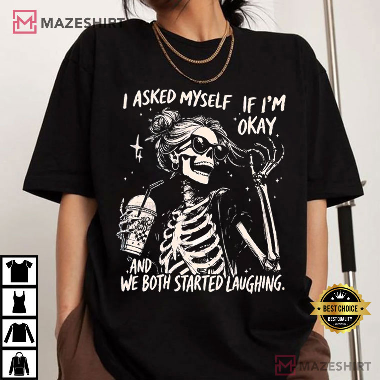 I Asked Myself If I’m Okay Skeleton Snarky Sarcastic T-Shirt – graphic tees men, graphic tees women, unique graphic t shirts