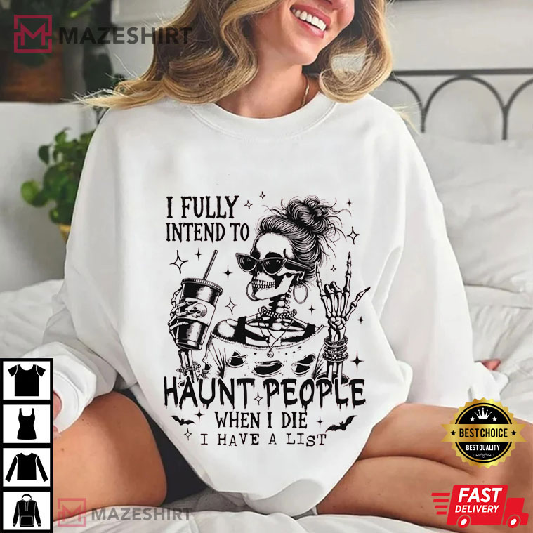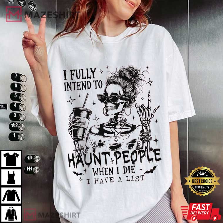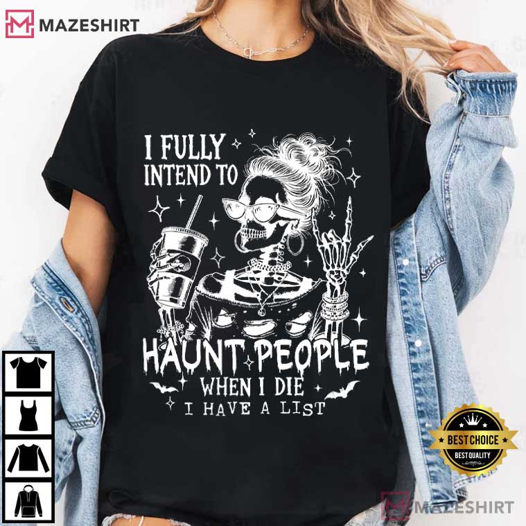 I Fully Intend To Haunt People Halloween Funny Skeleton T-Shirt – halloween themed shirts