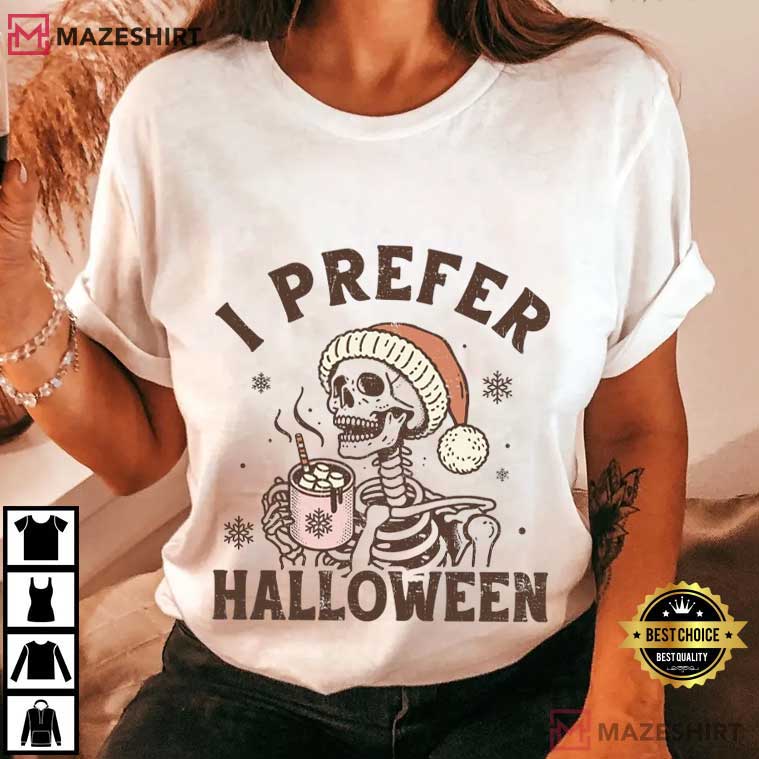 I Prefer Halloween Spooky Christmas Funny Skeleton T-Shirt – christmas themed shirts, funny christmas shirts