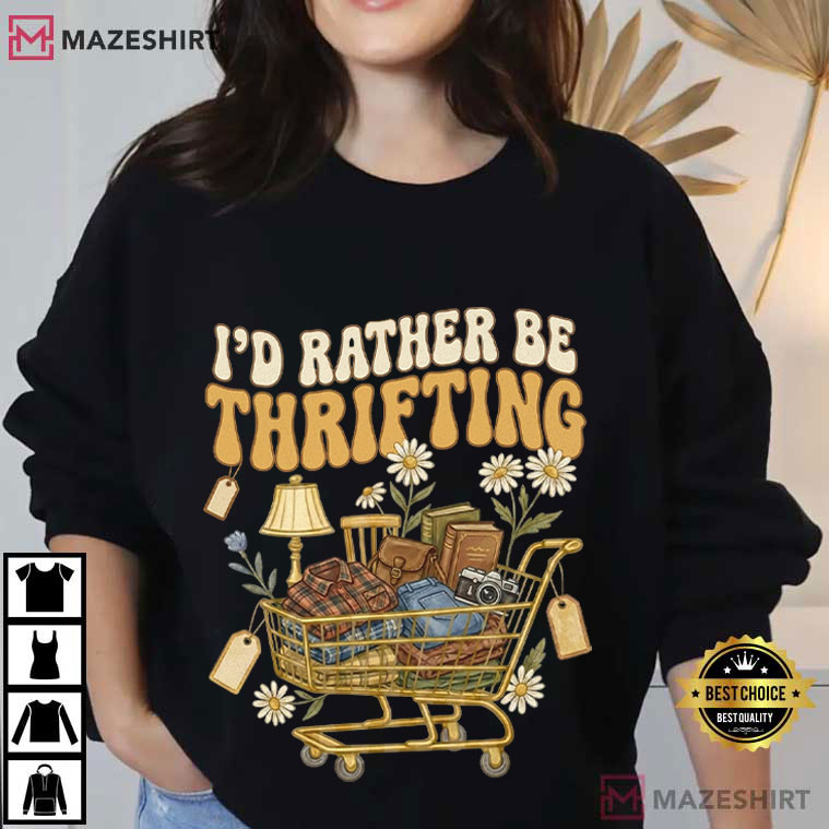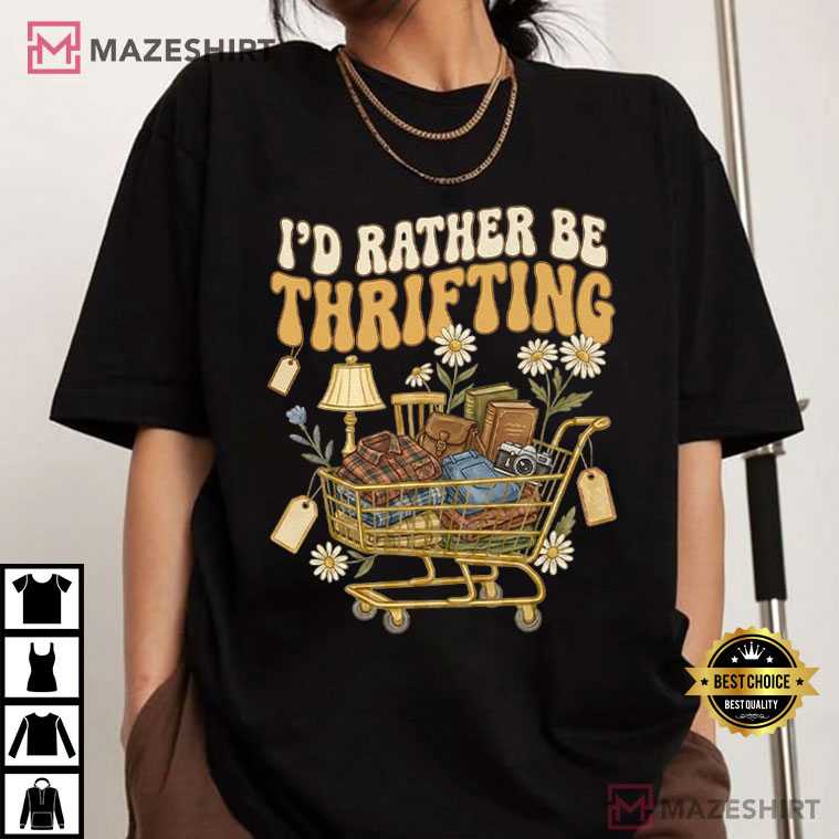The I’d Rather Be Thrifting Aesthetic Decor Cart T-Shirt is instantly familiar to anyone who knows how exciting it is to find something excellent in a thrift store. This design portrays the calm satisfaction of walking through thrift stores, finding hidden treasures, and contemplating the story behind each item. It’s not about buying more; it’s about buying better.