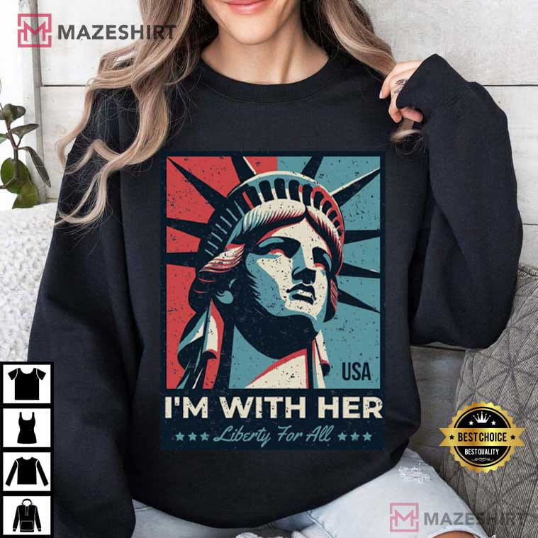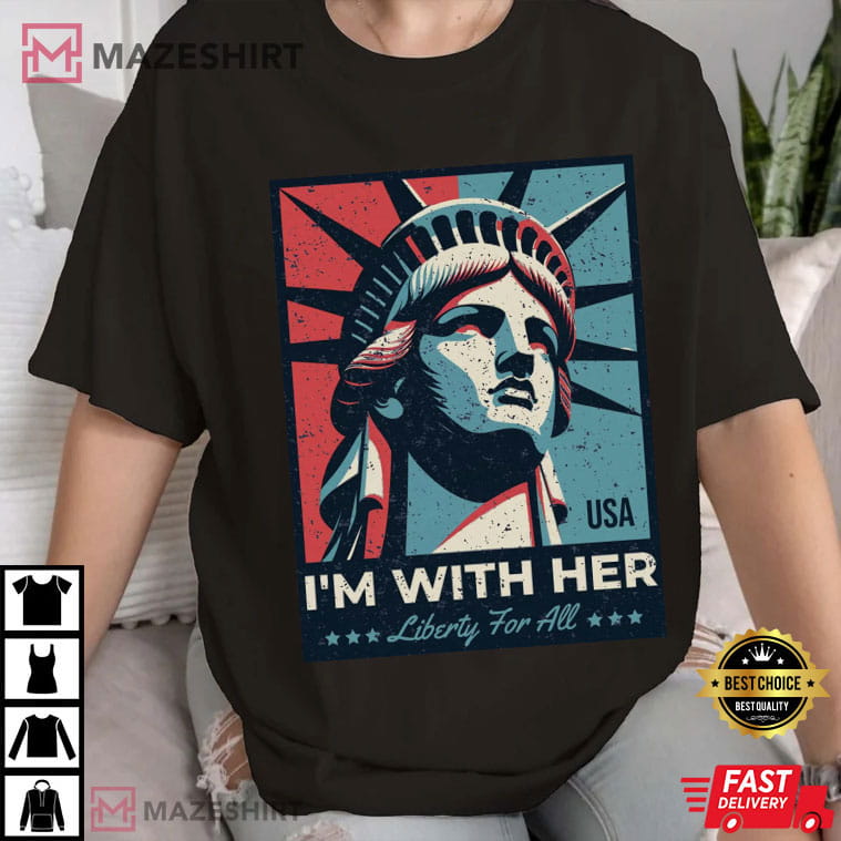 You smile and point to the famous Statue of Liberty design and say, “I’m with her—liberty, not the drama!” You need this shirt if you like freedom, comedy, and a little bit of rebellion. It combines typical American patriotism with a witty jab at political satire.