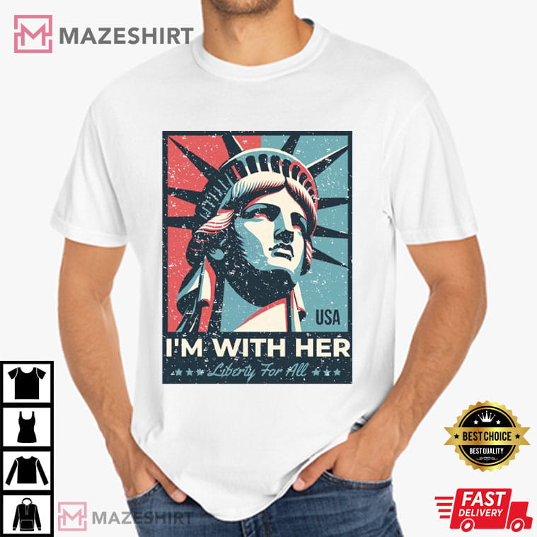 The “I’m With Her Statue of Liberty Anti-Trump 4th of July T-Shirt” is more than just a shirt; it’s a forceful statement, a patriotic joke, and the greatest way to show your independence on the Fourth of July. It’s the Fourth of July, and you’re at a BBQ. The grill is scorching, and someone asks you about your cool clothing.