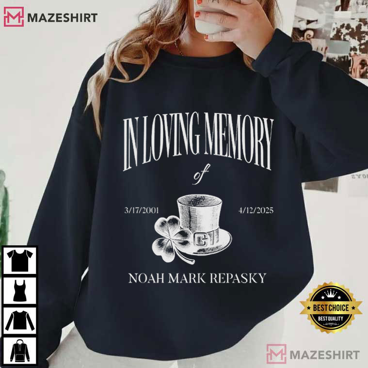 The In Loving Memory The Noah Mark Repasky T-Shirt is a modest, dignified, and emotionally meaningful way to remember him. This memorial shirt doesn’t include flashy designs or bright colors. Instead, it employs traditional fonts and meaningful images to remember a life that mattered and a name that will never be forgotten.