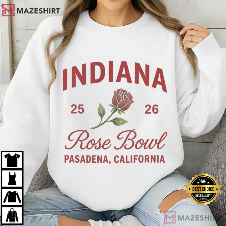 The big INDIANA letters in the middle of the design are surrounded by the years 25 and 26, which represent a significant time in Hoosiers football history. The solitary red rose, which is a clear reference to the famous Rose Bowl Game, brings everything together, and Pasadena, California, is one of college football’s most famous places to play.