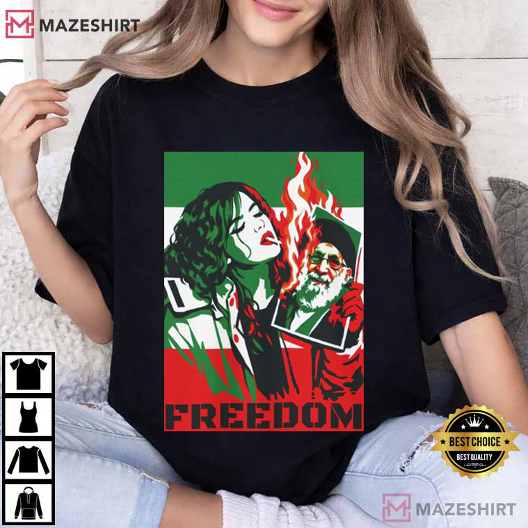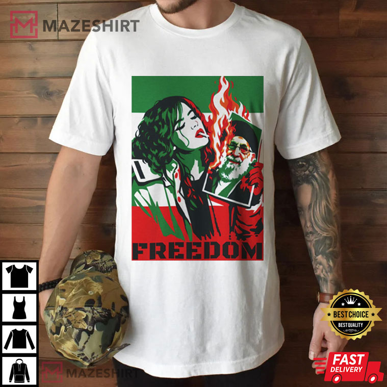 The vivid colors of this shirt are based on the Iranian flag, and the bold scenario is supposed to make it stick out. People who care about human rights around the world and cultural movements would also grasp that it has a deeper meaning.