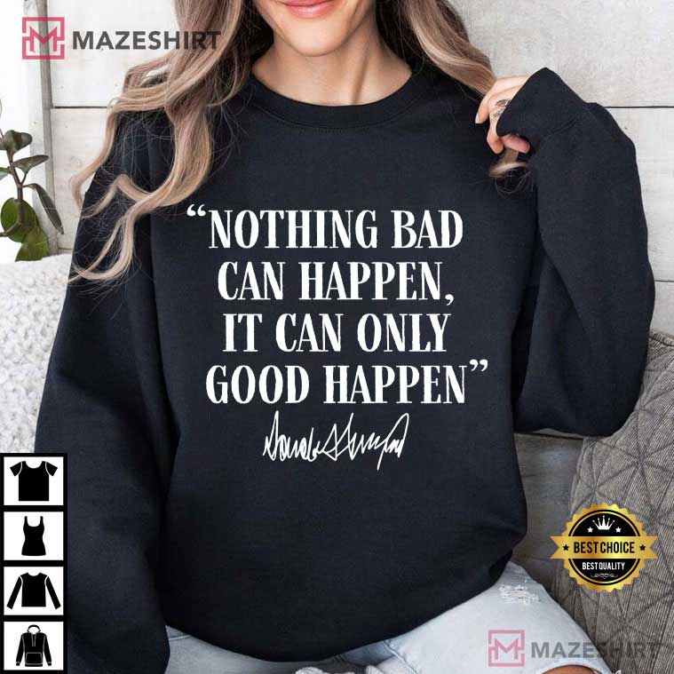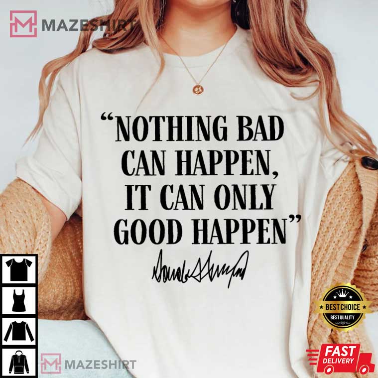 Some T-shirts make you appear good. Some of them are funny. And then there are shirts like this one that do both and start a full-blown political argument while you wait in line for coffee. Introducing the It Can Only Good Happen Funny Politics Quote from Donald Trump T-Shirt: a funny, bold, and slightly silly item of clothing that perfectly encapsulates one of Donald Trump’s most famous and meme-worthy phrases.