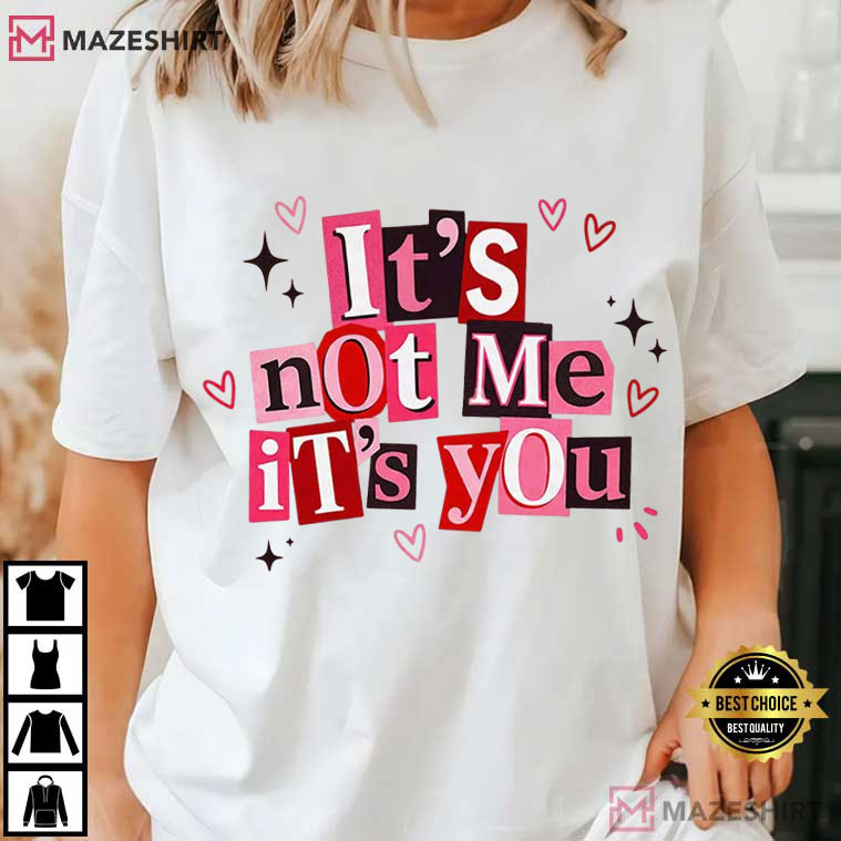 The It’s Not Me It’s You Joke The Valentine’s Day T-Shirt is for people who love romance and sarcasm. This design converts a standard breakup line into a fun Valentine’s statement with creative cut-out style letters in bright pinks and reds, hearts, and sparkles. It’s flirtatious, humorous, and self-aware enough to make people laugh instead of making things awkward.