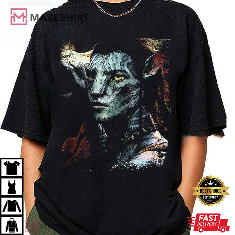 The Jake Sully Avatar The Way Of Water Movie T-Shirt brings Pandora’s spirit to life with a strong, atmospheric picture. This design is based on Avatar: The Way of Water and shows how Jake Sully changed from an outsider to a warrior, father, and protector of the whole world.