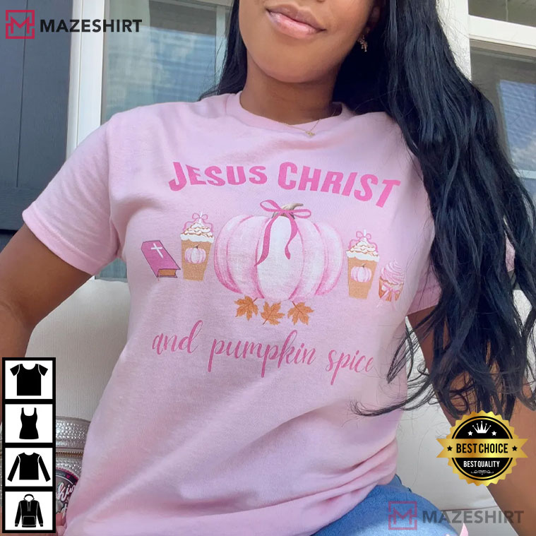 Hey there, people who love fall and walk by faith! This is for you if you’ve ever held a warm pumpkin spice latte and said a quick prayer of thanks. The Jesus Christ and Pumpkin Spice Fall Faith Based T-Shirt is the perfect combination of seasonal fun and spiritual sass. It’s a silky pink shirt that’s as comfortable as your favorite sweater on a chilly October morning.