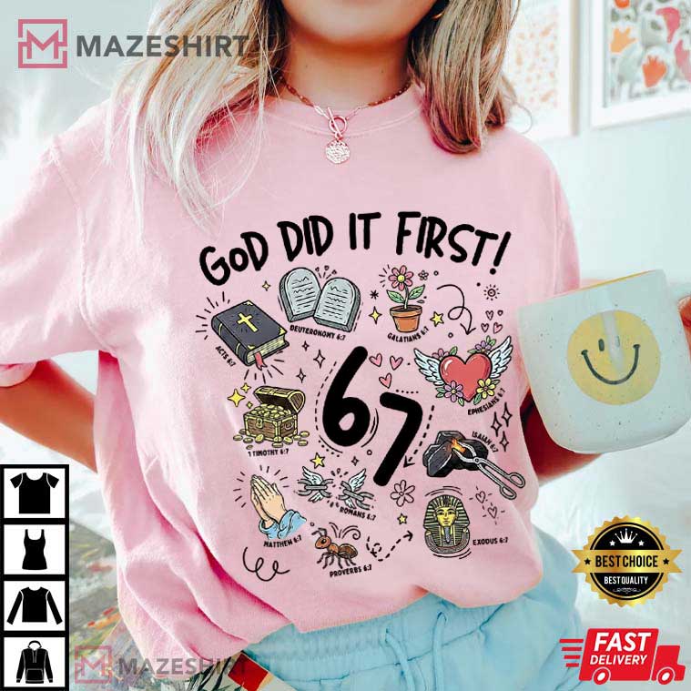 Jesus God Did It First Christian 6 7 Meme T-Shirt – graphic tees men, graphic tees women, unique graphic t shirts