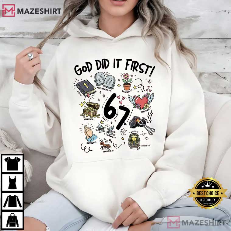 Faith is funny, and sometimes the simplest truth tells it all. The Jesus God Did It First Christian 6 7 Meme T-Shirt is a fun and modern way to talk about the Bible. It has a deep significance and is based on faith.