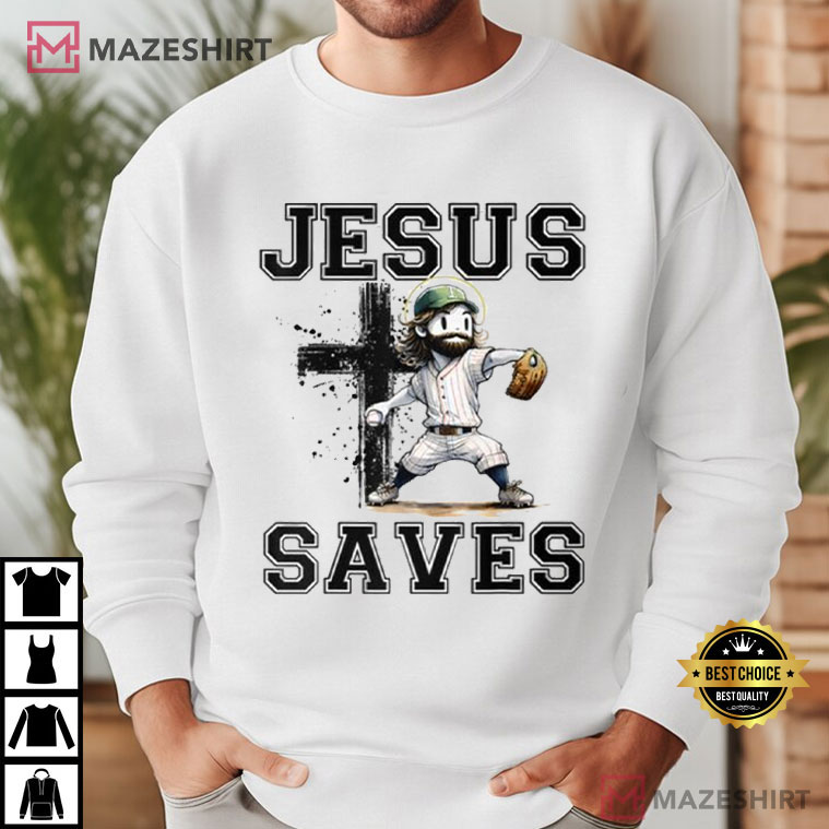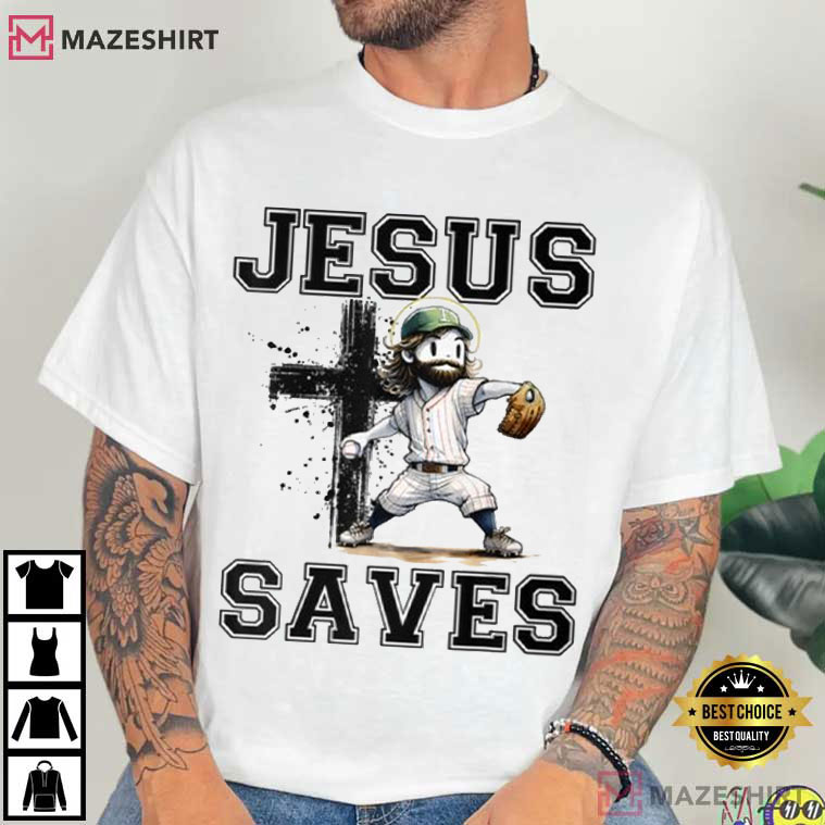 The Jesus Save Baseball Uniform Funny T-Shirt is the most surprising (and funny) way that faith meets the ballpark. This shirt design combines Christian symbols with America’s favorite game to provide a striking, conversation-starting shirt that is both fun and meaningful.