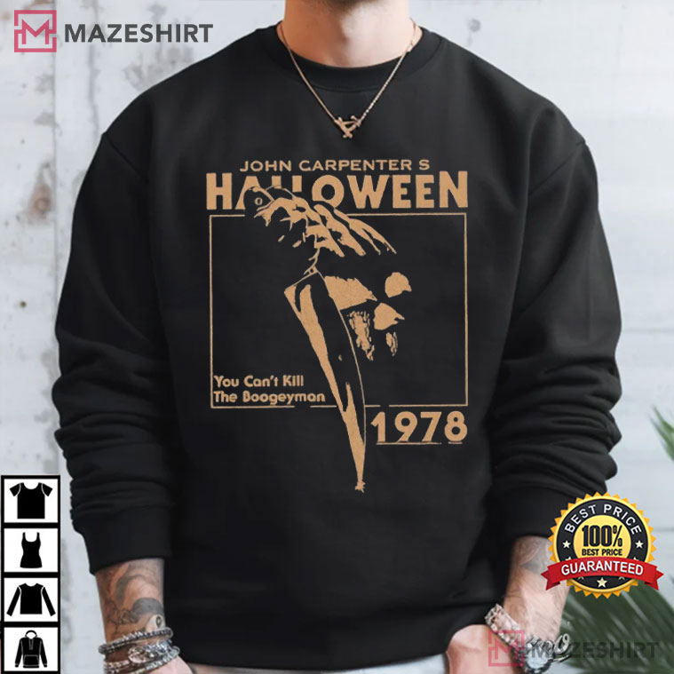 If you like old-fashioned horror that really creeps you out, you already know that John Carpenter’s Halloween (1978) is more than simply a movie; it’s the start of the modern slasher. The John Carpenter Halloween 1978 Michael Myers Horror Movie T-Shirt lets you wear that scary movie terror on your chest with pride. It’s a must-have for any horror fan, film lover, or vintage shirt collector who understands that “You can’t kill the Boogeyman.”