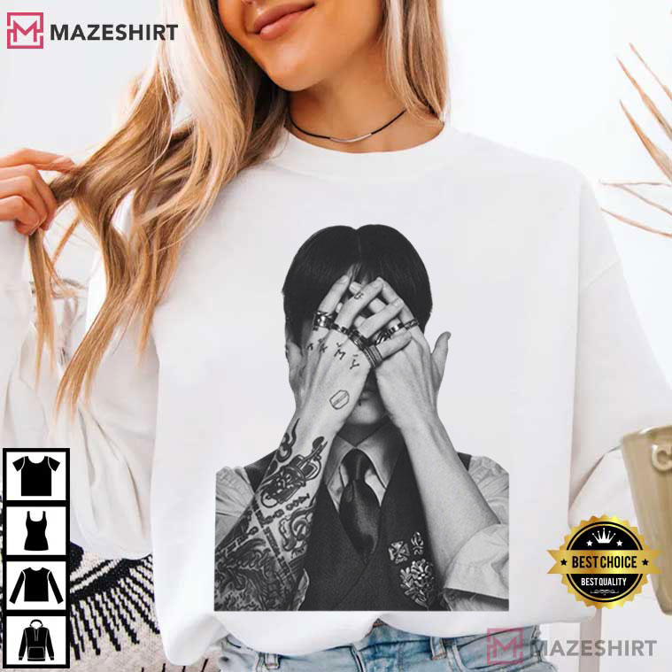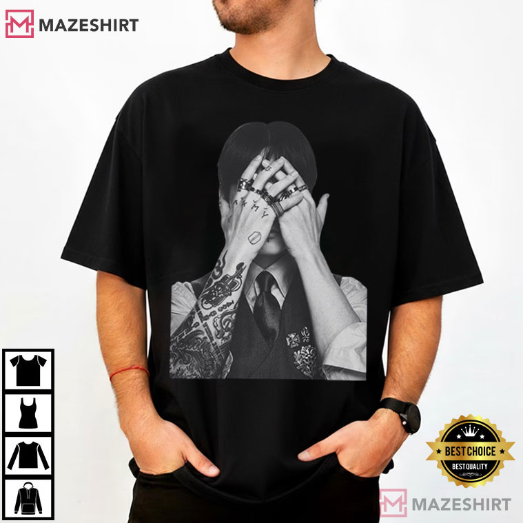 If you’re in the ARMY, this Jung Kook BTS Arirang Tour Merch Army Fan Gift T-Shirt is more than simply a fan gift. It shows how Jungkook’s identity is changing as he becomes a global icon and an artist who thinks deeply. The black-and-white photo shows him concealing his face with tattooed hands, which stands for the balance between being vulnerable and strong, being private and famous.