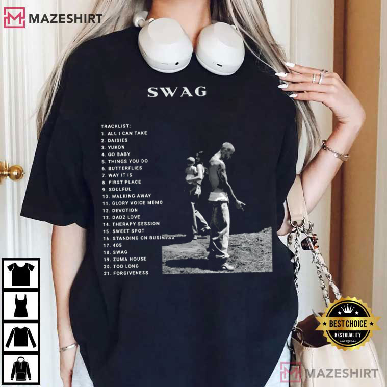 The Justin Bieber SWAG Album Launch T-Shirt is a must-have for fans who love how pop music changes over time and how classic album covers look. It combines music culture, simple design, and stories that look back in time into one clean, wearable image.