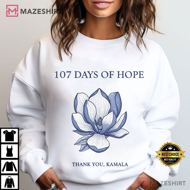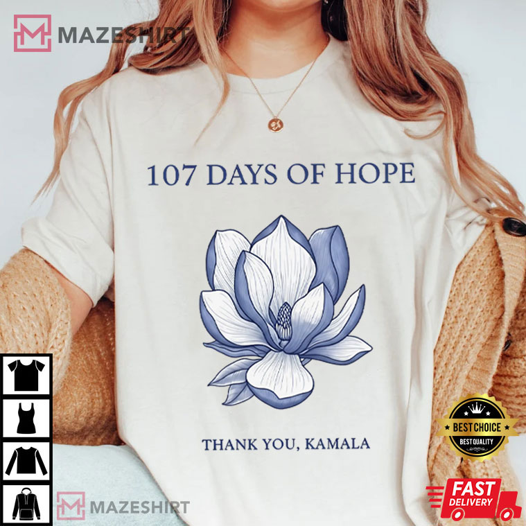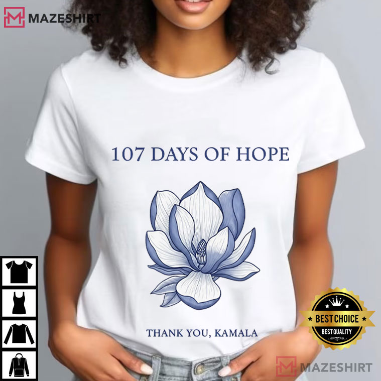 Are you ready to show your heart (and your hope) on your sleeve? The “Kamala Harris 107 Days Of Hope Tribute Floral Feminist Political T-Shirt” is ready to add some style and comedy to your wardrobe! This feminist T-shirt isn’t simply a piece of apparel; it’s a beautiful flower design that honors Kamala Harris’s pioneering spirit. This floral political shirt is great for political events, casual days, or showing off your feminist side. It has a fun countdown that adds to its elegance.