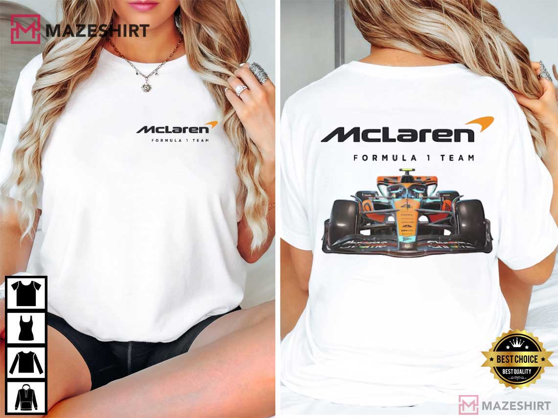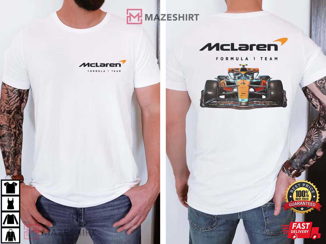 The Lando Norris McLaren Formula One 2025 Champion T-Shirt is a celebration of faith, momentum, and McLaren’s exciting comeback in modern Formula 1. The front has the McLaren Formula 1 Team emblem, which keeps things simple and confident. The back has a big picture of a McLaren F1 car in the famous papaya orange color that fans of the sport will recognize right away.