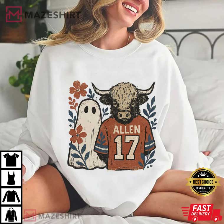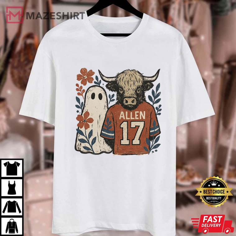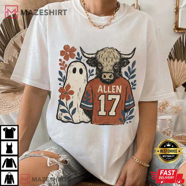 Hello, fellow Bills Mafia members and people who love Halloween! Stop right here if you’re looking through a lot of possibilities for the perfect mix of football fan and Halloween spirit. The Lets Go Boo Buffalo Allen 17 Spooky Floral Ghost Halloween T-Shirt is the shirt that will change the game for you. This shirt captures the adrenaline of a booming crowd at Highmark Stadium and the spooky beauty of October nights.