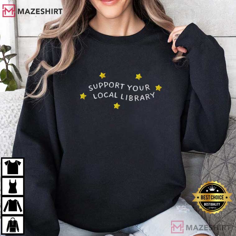 Librarian Lovers Support Your Local Library Embroidered Sweatshirt custom embroidered sweatshirts, personalised embroidered sweatshirts, embroidered crewneck