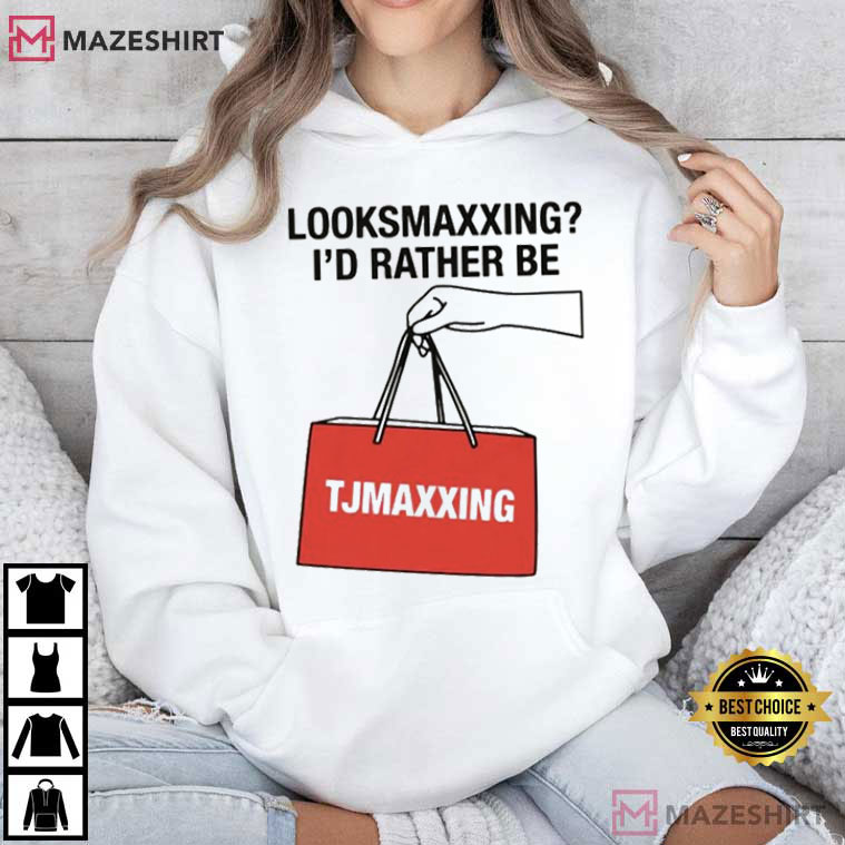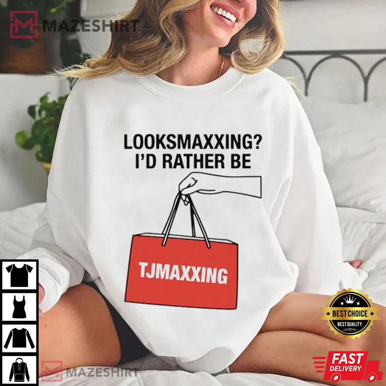 The Looksmaxxing I’d Rather Be Store Maxxing Funny T-Shirt takes one of the most popular expressions on the internet and turns it into something that is both funny and realistic. This design doesn’t try to be perfect; instead, it celebrates the happiness of finding a good deal, a great deal, and a little retail therapy.