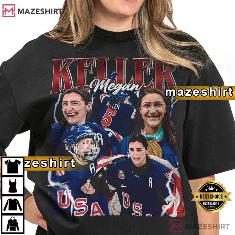 The Megan Keller Ice Hockey Vintage Sport T-Shirt is perfect for lovers of outstanding defense, leadership on the blue line, and USA hockey pride. It represents the intensity and legacy of one of the best women’s ice hockey players of all time. This shirt has a vibrant, retro collage look that combines the energy of traditional sports posters with the appreciation of modern fans.
