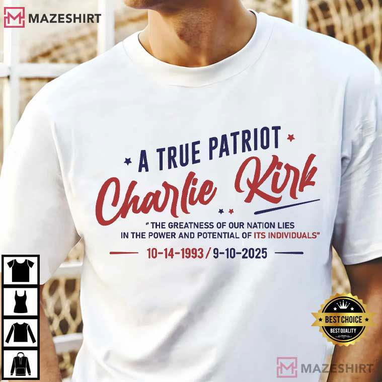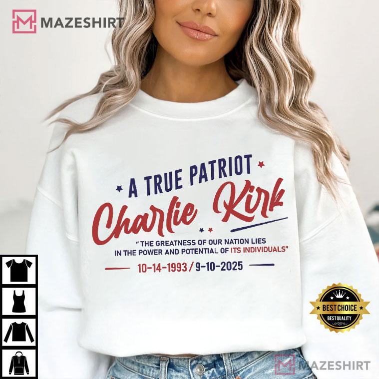 Feeling the loss of a hero yet willing to smile in his memory? The Charlie Kirk Memorial With a True Patriot American T-Shirt, you can honor a legend in style and with a laugh. This bold black T-shirt has “MEMORIAL CHARLIE KIRK” in rough white lettering over the chest, “A TRUE PATRIOT” below it, and a faint outline of the American flag. It captures the spirit of a man who fought for freedom until his last breath.