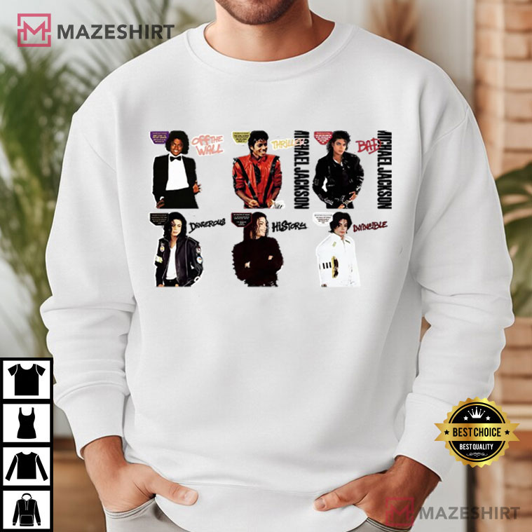 This Michael Jackson Legendary Albums 90s Pop Music T-Shirt makes you feel like you’re wearing a piece of history if you love classic music. This design is based on some of the most famous album eras in pop culture. It shows how Michael Jackson changed throughout time in a clean, collectible way that music fans will adore right away.