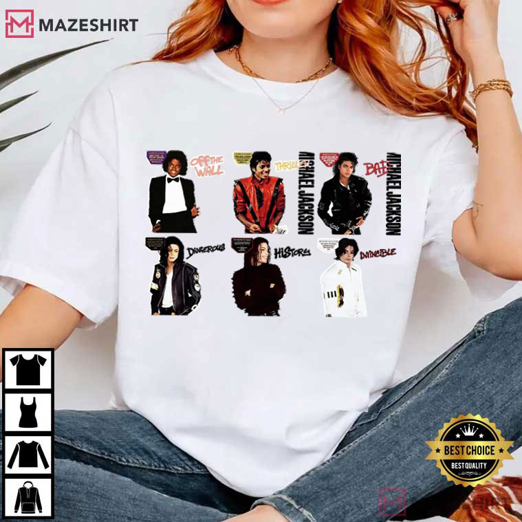 Michael Jackson Legendary Albums 90s Pop Music T-Shirt – music tee shirts, concert tour t shirts
