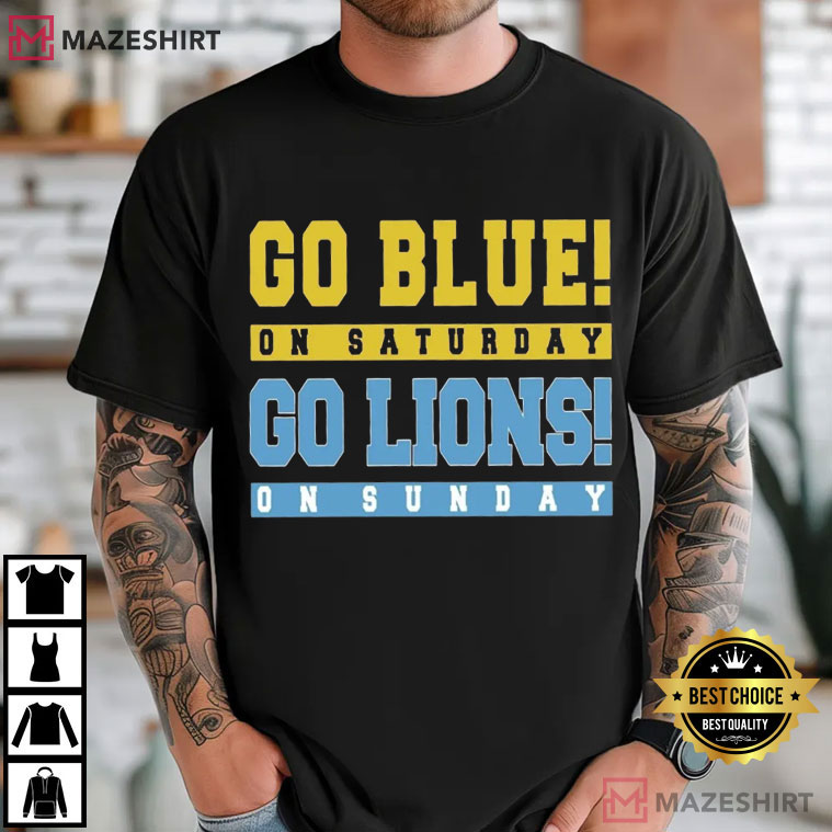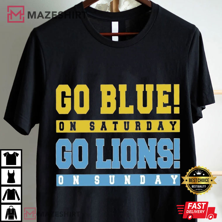 Michigan Wolverines Detroit Lions Go Blue On Saturday Go Lions On Sunday T-Shirt