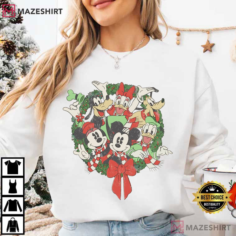 This Mickey Mouse And Friends Christmas Magic Trip T-Shirt looks like it came directly from Main Street, U.S.A. If you want a holiday full of memories, sparkle, and a little Disney magic, this shirt is for you. The design shows all of the traditional characters—Mickey, Minnie, Donald, Daisy, Pluto, and Goofy—inside a Christmas wreath, all bundled up in hats, scarves, and bright seasonal colors.