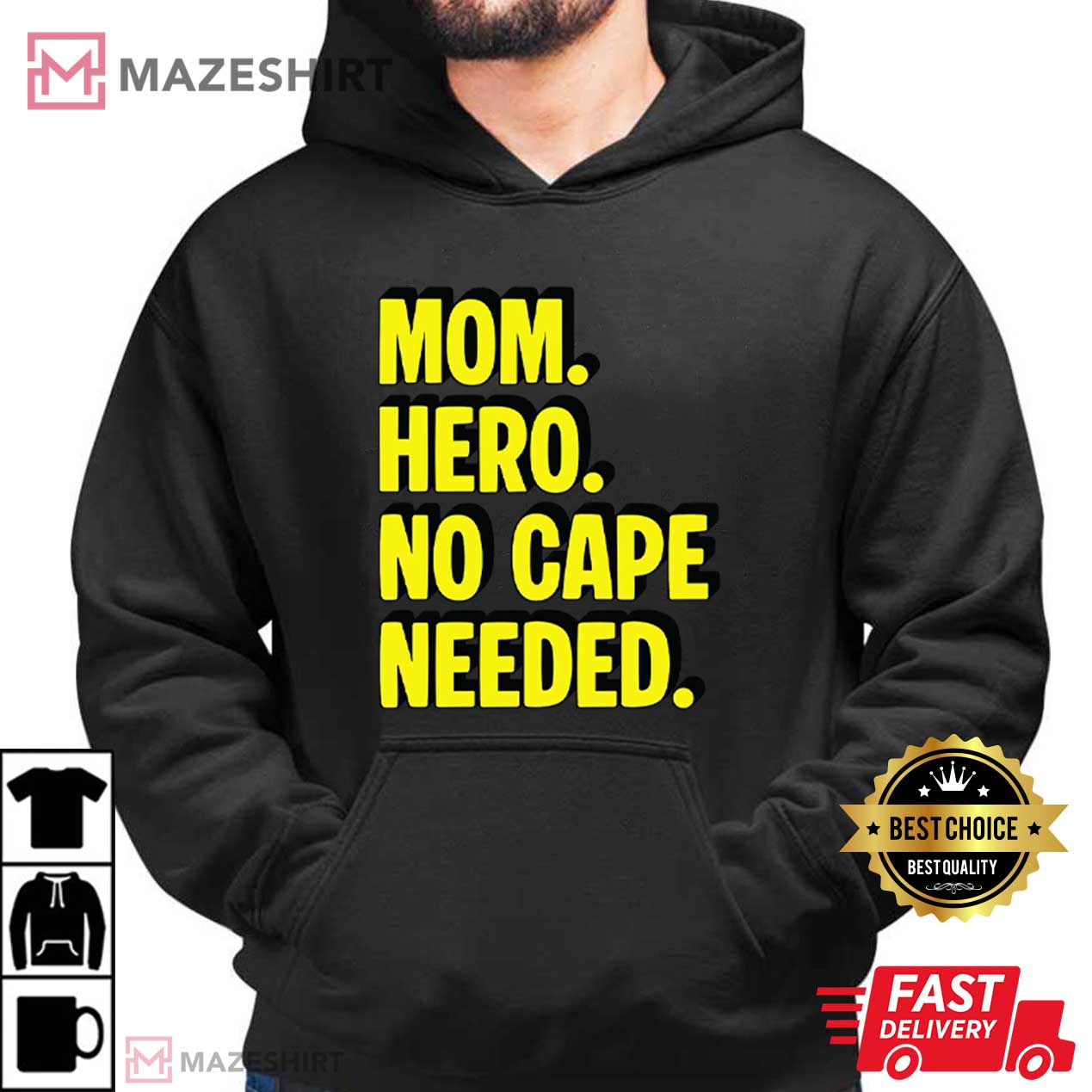 Mom Hero No Cape Needed Mothers Day Funny T-Shirt – graphic tees men, graphic tees women, unique graphic t shirts