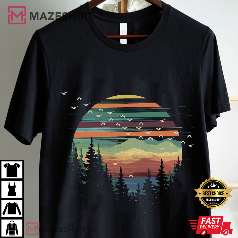 This isn’t just another shirt; it’s a love letter to nature that you can wear. This shirt is excellent for adventurers, dreamers, hikers, and anyone who feels “forest therapy” should be covered by health insurance. It perfectly portrays the calmness of tall pine trees, bright sunset colors, and the everlasting beauty of the wild.