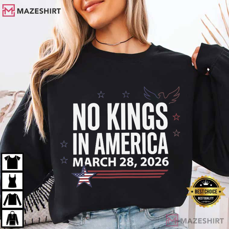 No Kings In America March 28 2026 Patriotic Protest T-Shirt – graphic tees men, graphic tees women, unique graphic t shirts